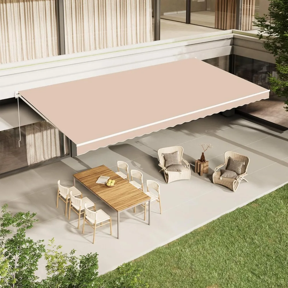 • RETRACTABLE DESIGN and EASY OPERATION - The patio awnings with simply open and close operation manually by a hand crank, swift it to raise or low front pitch bar.