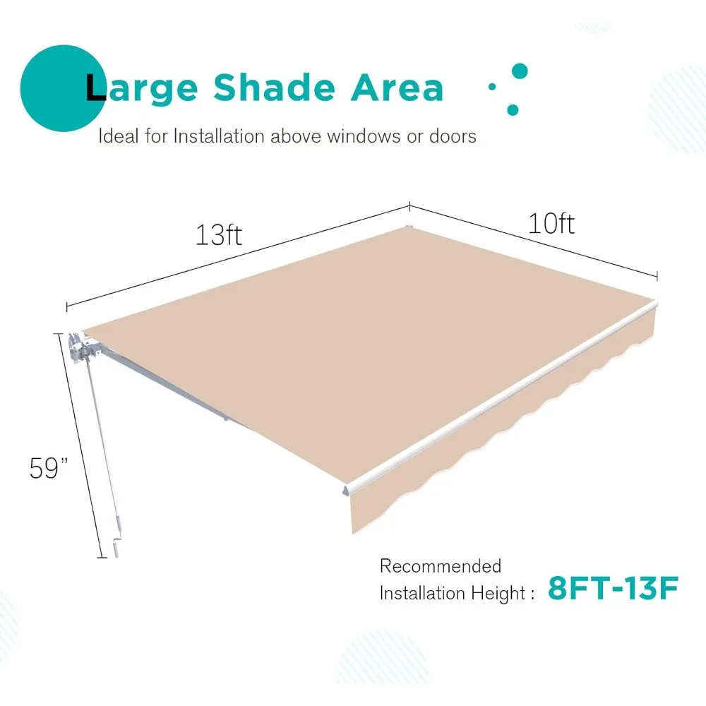 مظلة شمسية قابلة للسحب يدويًا مقاس 13 × 10 أقدام، غطاء مظلة فناء خارجي، مظلة سطح غروب الشمس مع كرنك يدوي